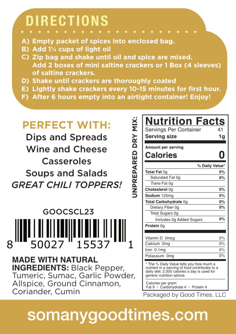 Delicious when finished crackers are crunched over your favorite salad as a crouton. As a topping on Soups, Chowders, or Chili!
